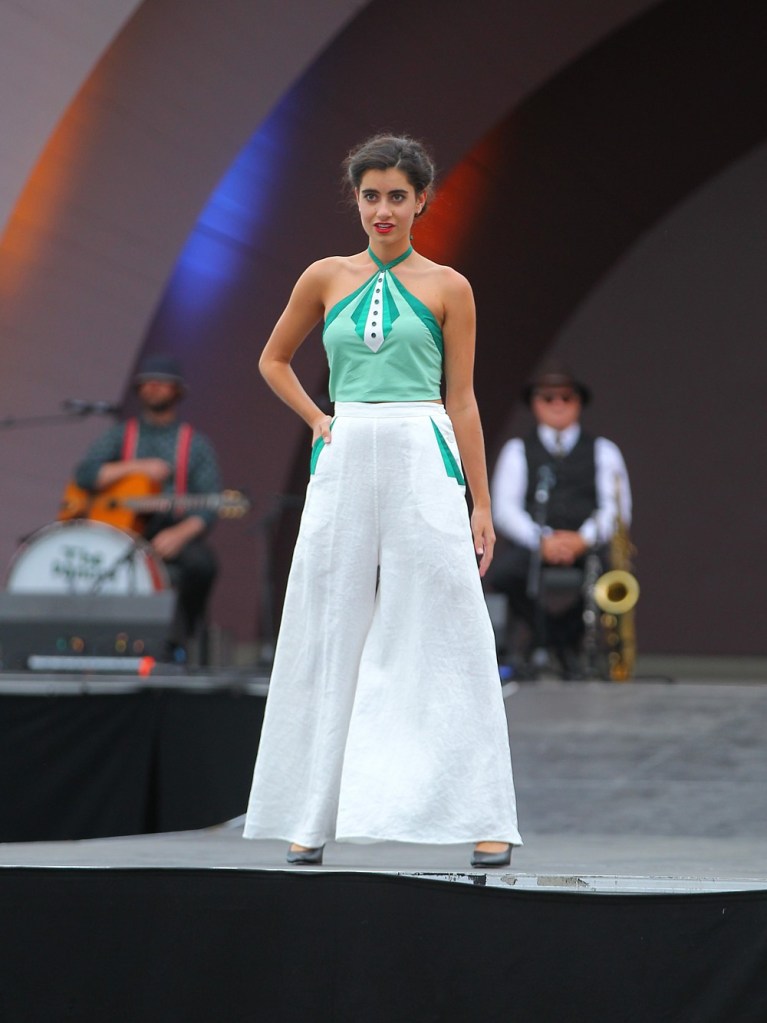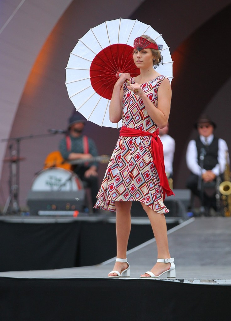 When I was given the chance to create a fashion collection for the runway I couldn’t believe my good fortune. I didn’t want to tell anyone for fear that I’d dreamt it up and it wasn’t really going to happen. But I knew straight away I wanted my collection to be the most colourful on the runway, to encapsulate summer fun and to showcase the variety of styles, fabrics and shapes that Art Deco fashions encompass.