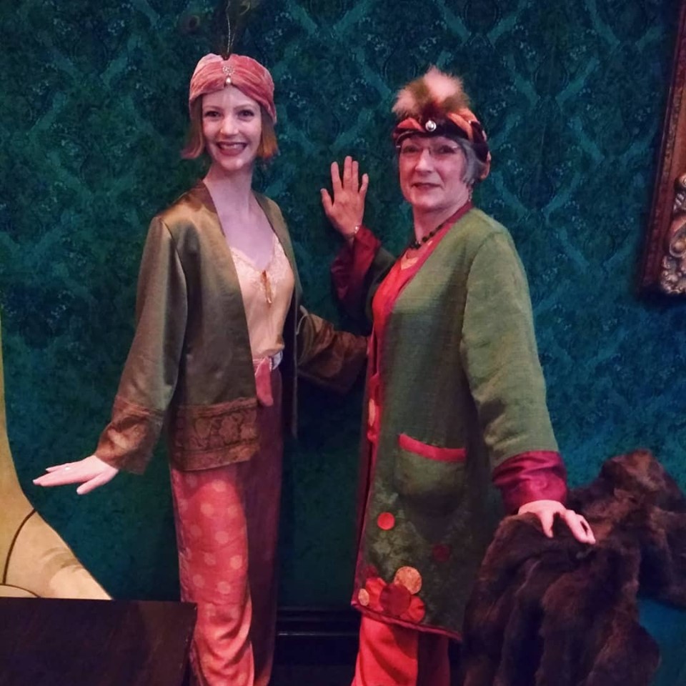 Winter deco is relaxing and low-key, a part time job not a full time one. We taught dance classes and performed at the ball, but we had time for long dinners and leisurely oriental lounging and hikes in the hills. As usual for any festival I was sewing right till the last minute, with one dress still being sewn only hours before the ball.
