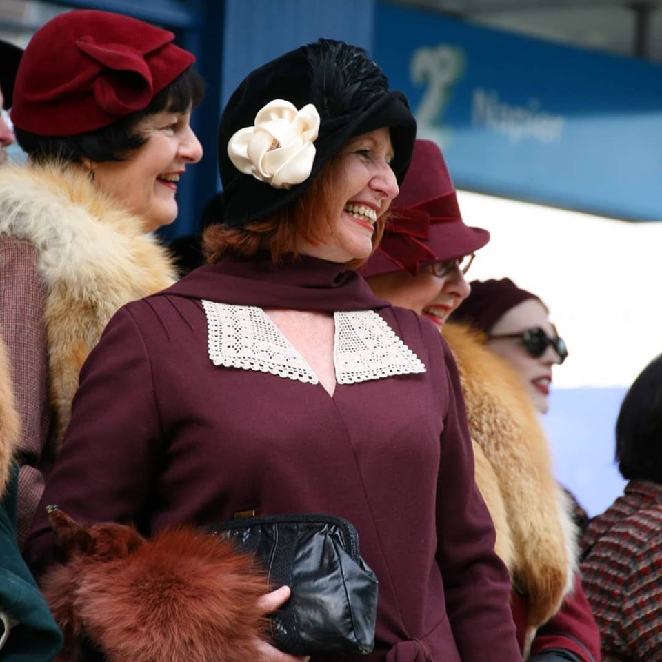 I’m sitting at home with a cold dreaming of spring, the daffodils know it isn’t far away but it still feels more appropriate to be sewing woolly coats than silk dresses. Napier has proper seasonal changes, snow on the mountains in winter and hot rainless summer days. We celebrate both extremes here with the Art deco festivals, and it got me thinking – I used to write up in great detail the fun and festivities of the Art Deco festival. But as I’ve got so busy sewing, my blog posts have been very sporadic (the last one was over a year ago!) So here’s Napier Art Deco festivals 2019 Summer and Winter together.